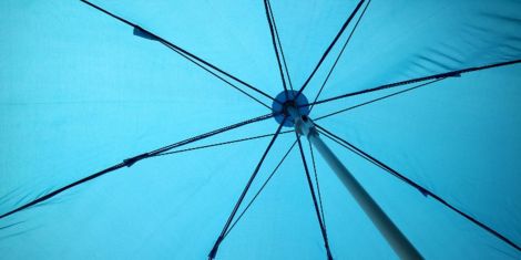 Mon joli parapluie avait pris une drôle de façon de replier ses ailes, genre gag, ce qui, hélas, augurait de sa fin proche. Donc, un peu tristement quand même, j’envisageai de lui donner un successeur. Mais, il ne fut pas si aisé de remplacer ses doux papillons fondus sur fond bleuté, allant à peu près avec tout. Grâce à quelques trombones venus au secours de ses articulations défaillantes, je lui avais affectueusement offert un sursis. Quoiqu’il en soit, au cours d’une flânerie comme nous autres femmes les aimons, je trouvai l’occasion parfaite, rapport qualité-prix et coup de cœur. Un article dans les tons pastel qui pourrait même, en cas de beau soleil – hypothétique cette année 13 – faire office d’ombrelle : en relancer la mode, pourquoi pas ? Le rose saumon et le gris perle, alternant sur ses huit triangles étirés, flattent le teint, et ne capteront pas trop les rayons de phœbus.