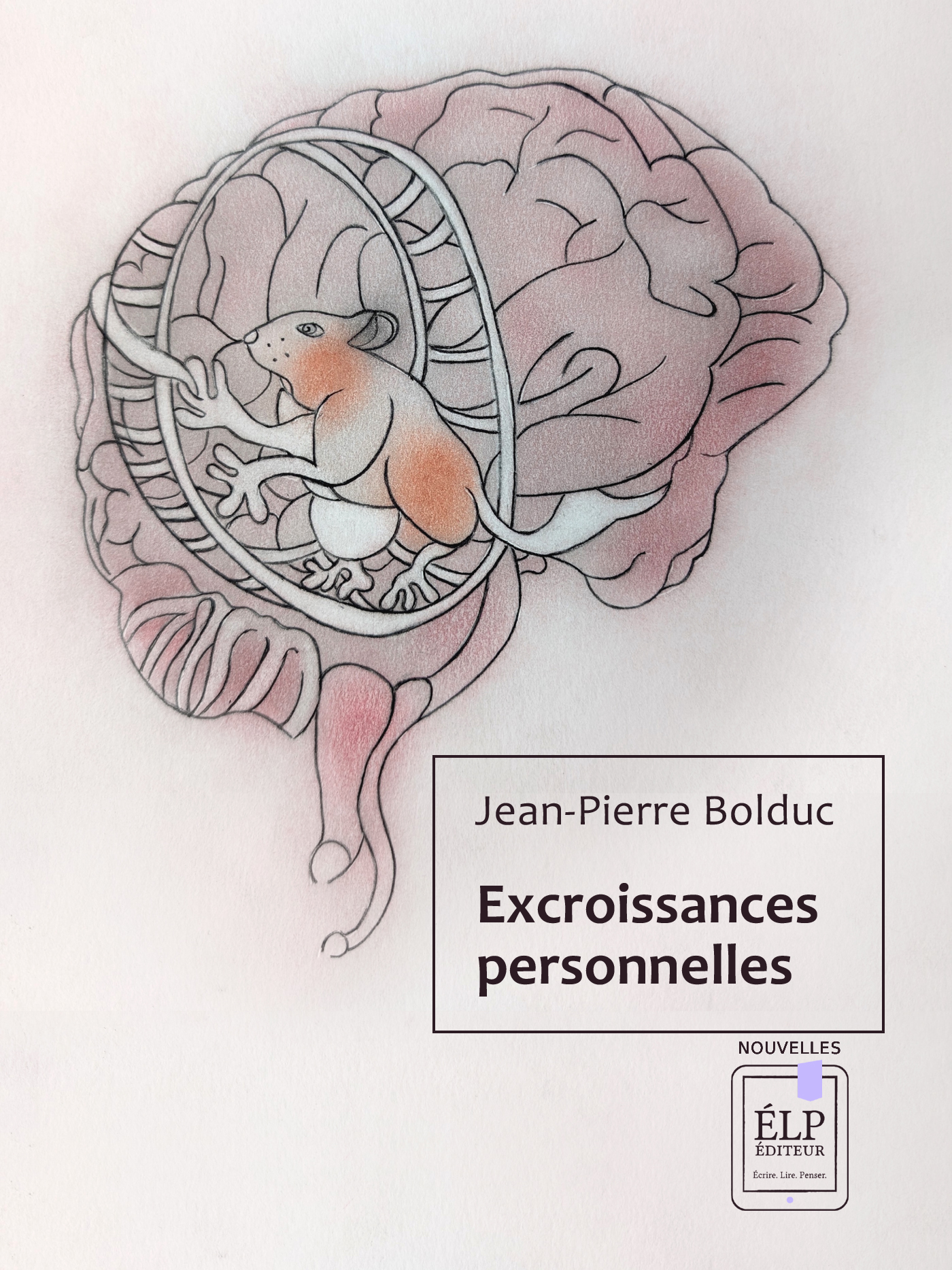 Nous présentons Excroissances personnelles de Jean-Pierre Bolduc. Il s’agit d’un recueil d’une série d’une centaine de miniatures en prose. Les textes, très brefs, sont écris en mimésis de parole (imitation littéraire partiellement codifiée de la langue orale, québécoise, ici, en l’occurrence). Ils forment un vrac étoffé d’évocations de sentiments intérieurs, à travers l’interprétation expressive (aussi au sens dramatique du terme) d’un lot restreint de réactions sociales. Cette série de micro-textes, qu’il vaut mieux qualifier de tropismes (au sens fondateur donné à ce terme par Nathalie Sarraute) que de «nouvelles», saisit vivement notre imaginaire, par sa fielleuse justesse. On a tendance à y exprimer, très explicitement, des sentiments frustrés, rageurs, des évocations de situations tendues, conflictuelles. Ces sentiments et ces situations ont été, d’évidence, les émanations de problèmes particuliers, vécus antérieurement et/ou revécus intérieurement… ressassés… ruminés… par un(e) protagoniste quelconque qui bad trip un peu et gamberge beaucoup. En gros, on découvre les traces verbo-textuelles laissées par un(e) quidam de notre temps, qui, au moment de leur éructation, paniquait peut-être un peu excessivement (ou pas). Son hamster tournait trop pour rien… possiblement… pour tout dire.